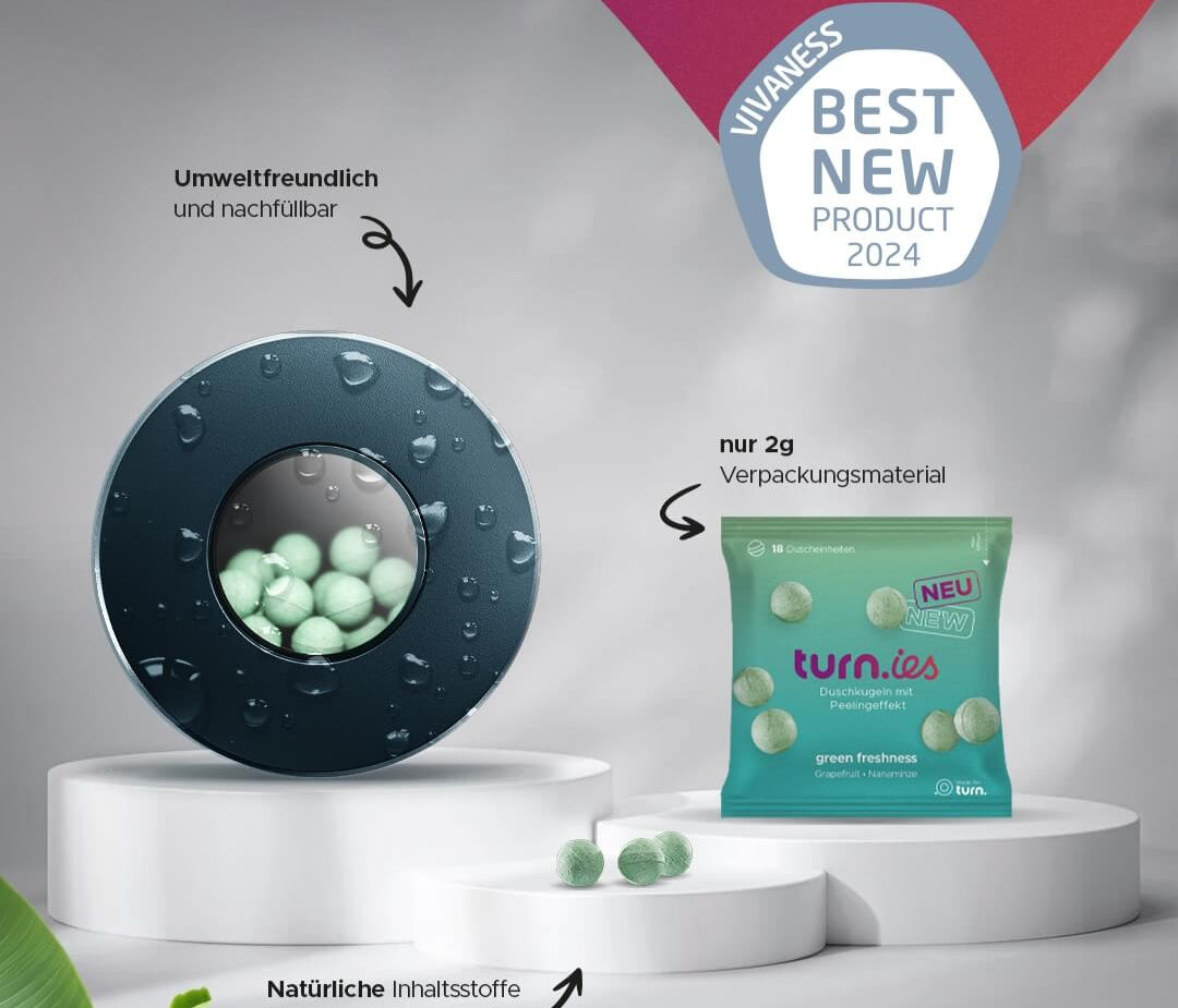 Der turn revolutioniert dein Duscherlebnis. Keine verschwendeten Plastikflaschen mehr – du erhältst genau die richtige Menge Reinigung & Pflege und vermeidest jede Menge Müll. Platzsparend, patentiert und umweltfreundlich!
