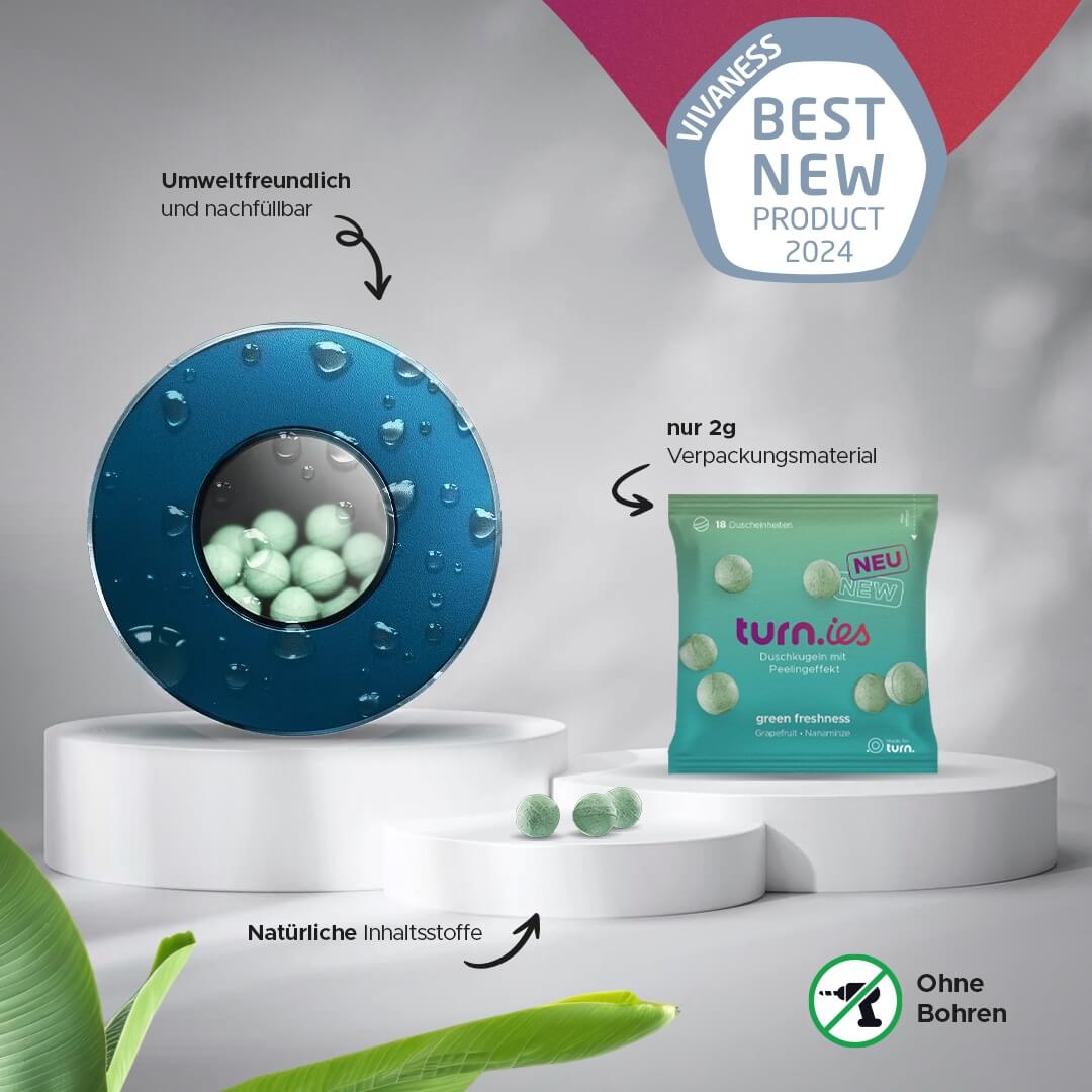 Der turn revolutioniert dein Duscherlebnis. Keine verschwendeten Plastikflaschen mehr – du erhältst genau die richtige Menge Reinigung & Pflege und vermeidest jede Menge Müll. Platzsparend, patentiert und umweltfreundlich!